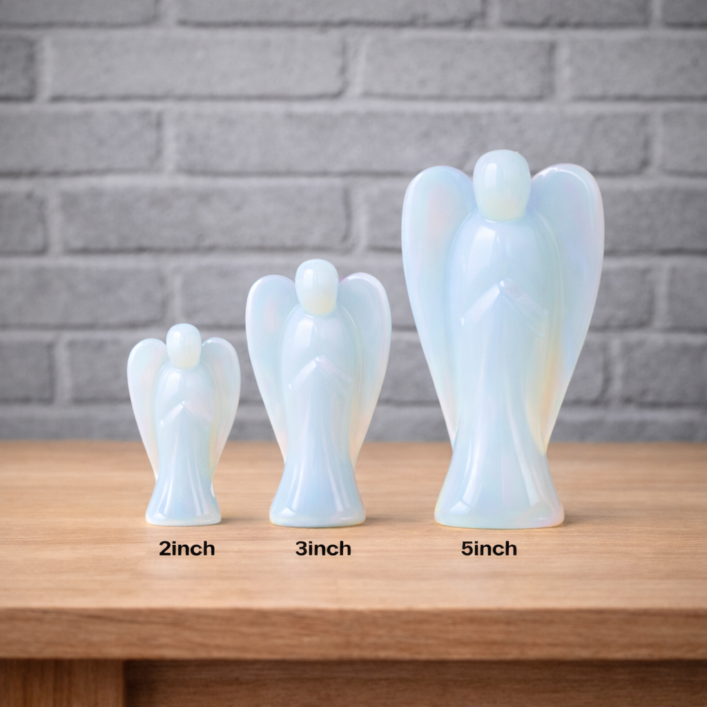 The Opalite Angel by ZenVedas is a divine symbol of protection, healing, and spiritual guidance. Hand-carved from natural Opalite (Man-made Crystal), this angel radiates powerful energy to support emotional balance, strength, and positivity.