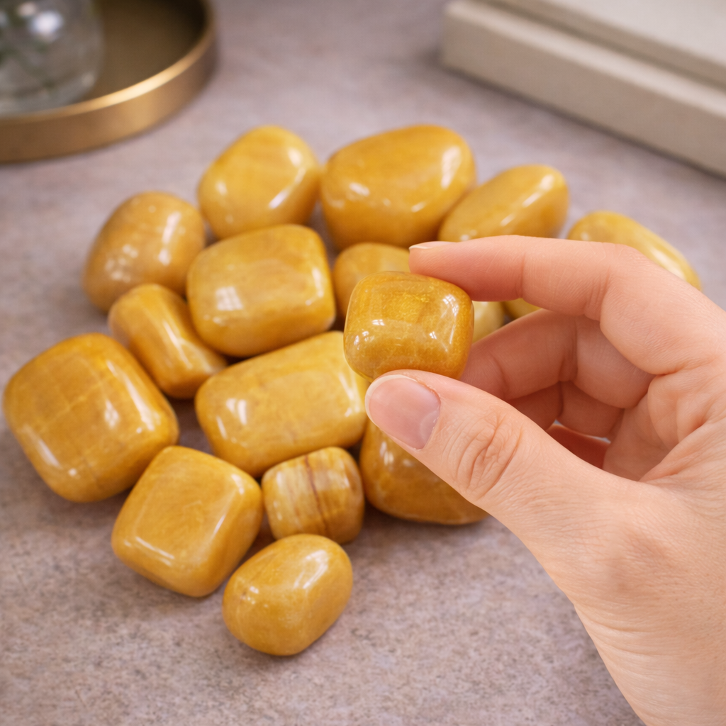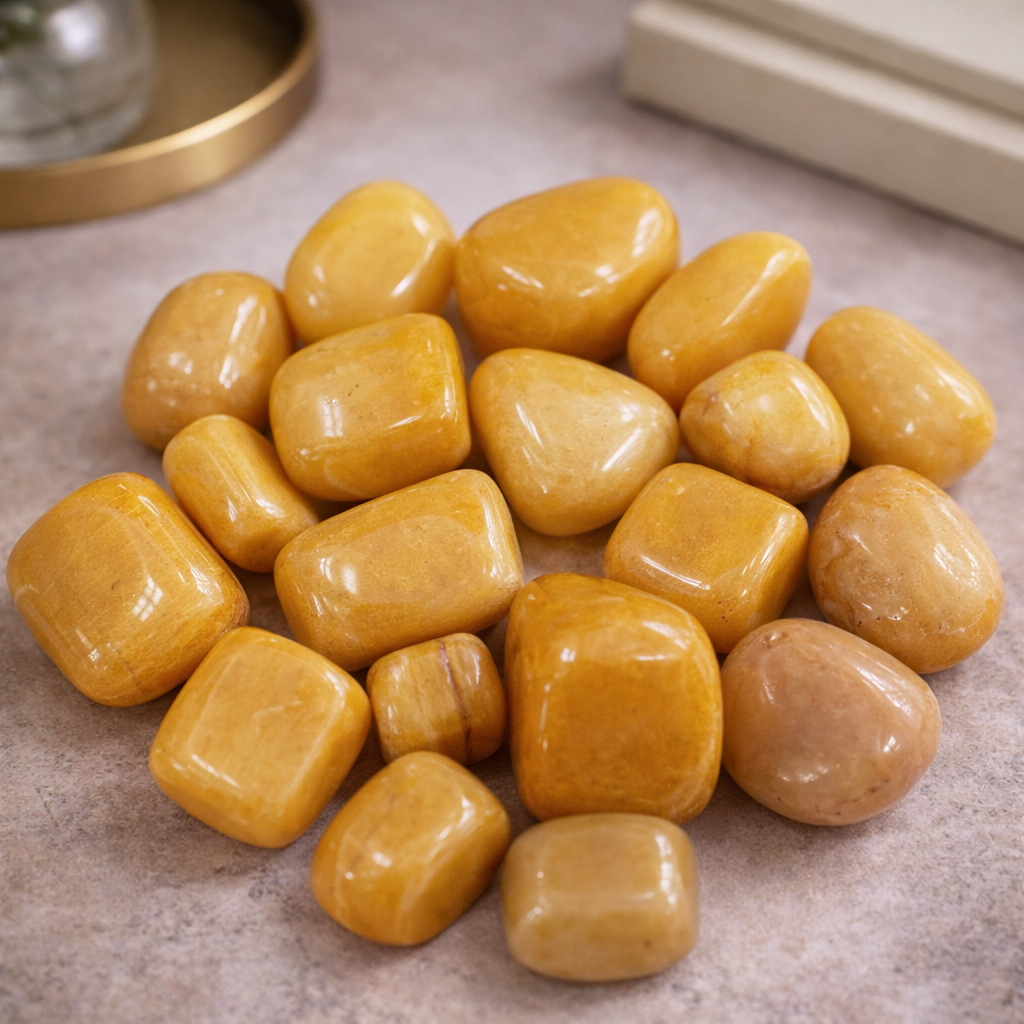 Buy natural Yellow Aventurine Tumbles from ZenVedas for positivity, confidence & prosperity energy. Ethically sourced and energetically cleansed before shipping.