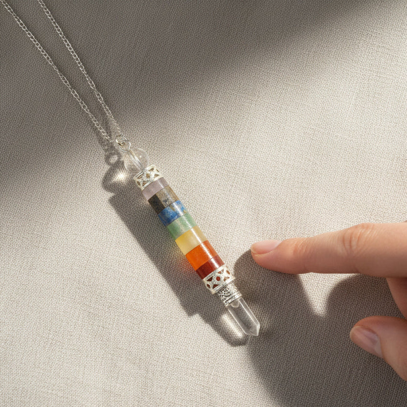 Experience the powerful energy of the 7 Chakra Crystal Dowsing Pendulum from Zenvedas. This beautifully crafted pendulum is designed for dowsing, chakra balancing, energy healing, and intuitive guidance. Made with natural 7 Chakra Stones, it radiates positive vibrations and spiritual clarity.