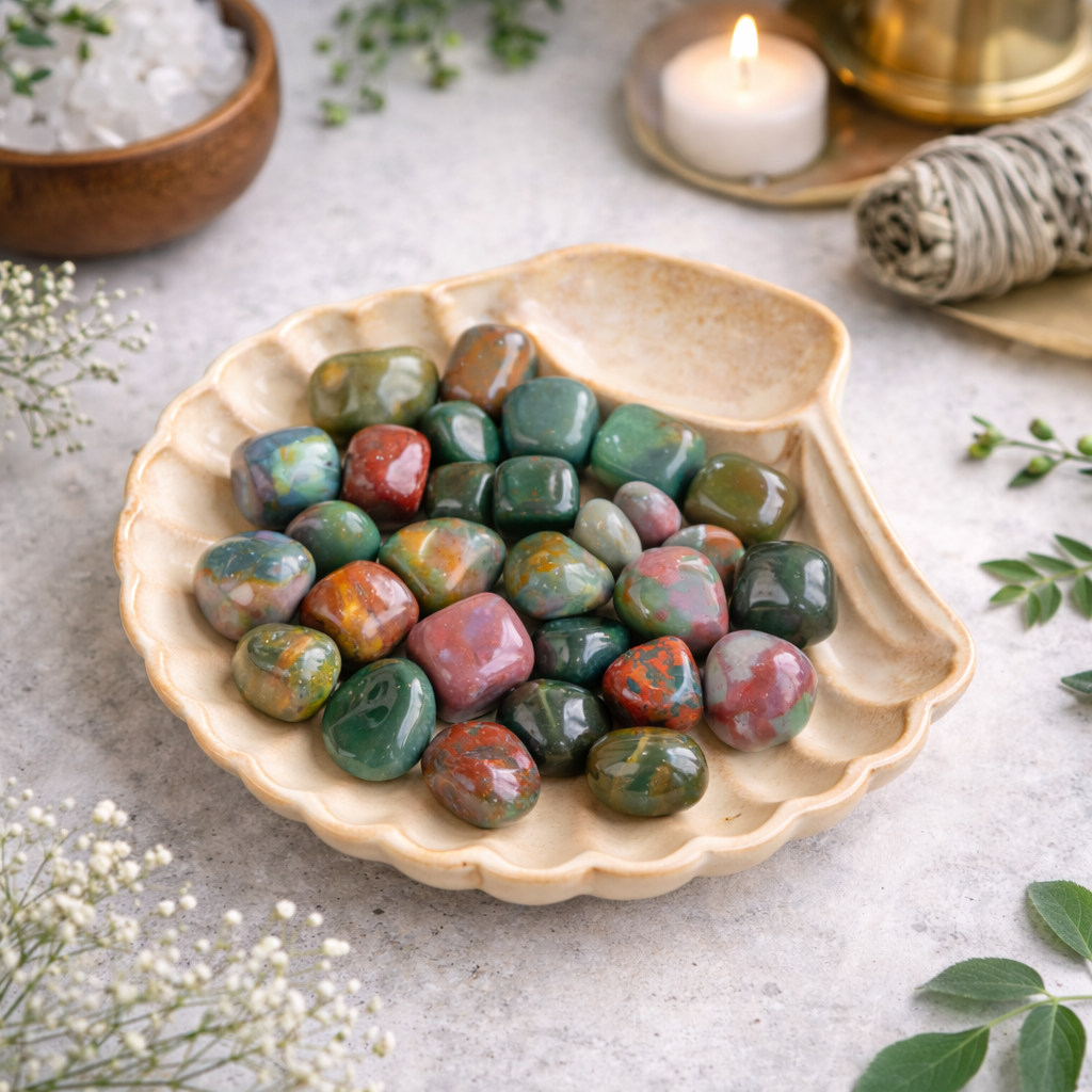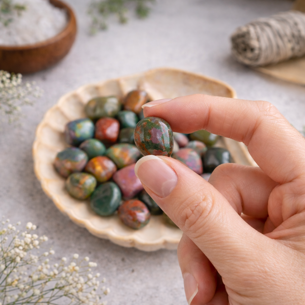 Buy natural Blood Stone Tumbles from ZenVedas for courage, vitality & strength. Ethically sourced and energetically cleansed before shipping.