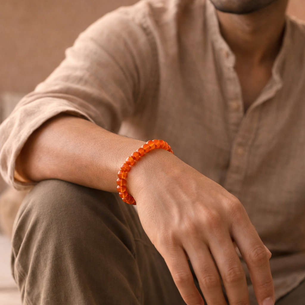 Wear the Carnelian Bracelet on your left wrist to receive its calming and protective energy, or on the right wrist to express its energy outwardly. It is suitable for daily wear.
