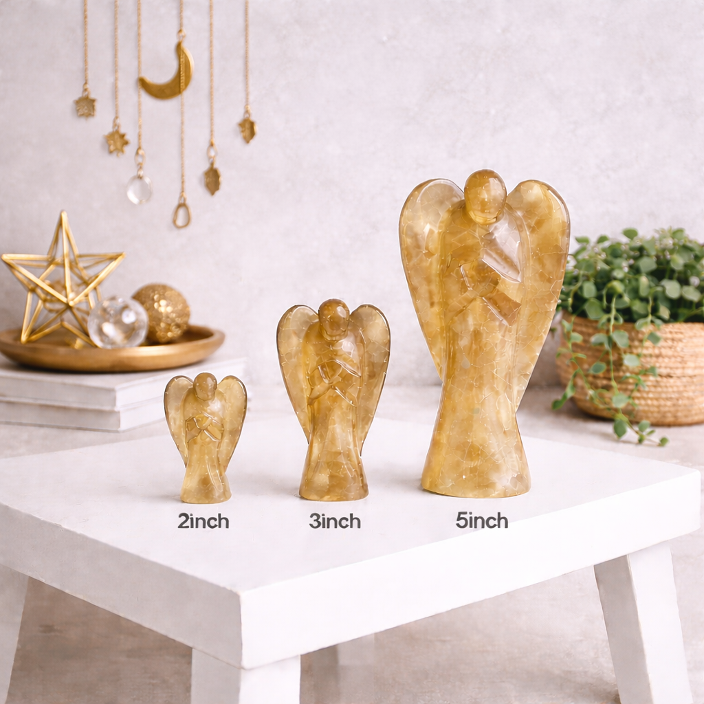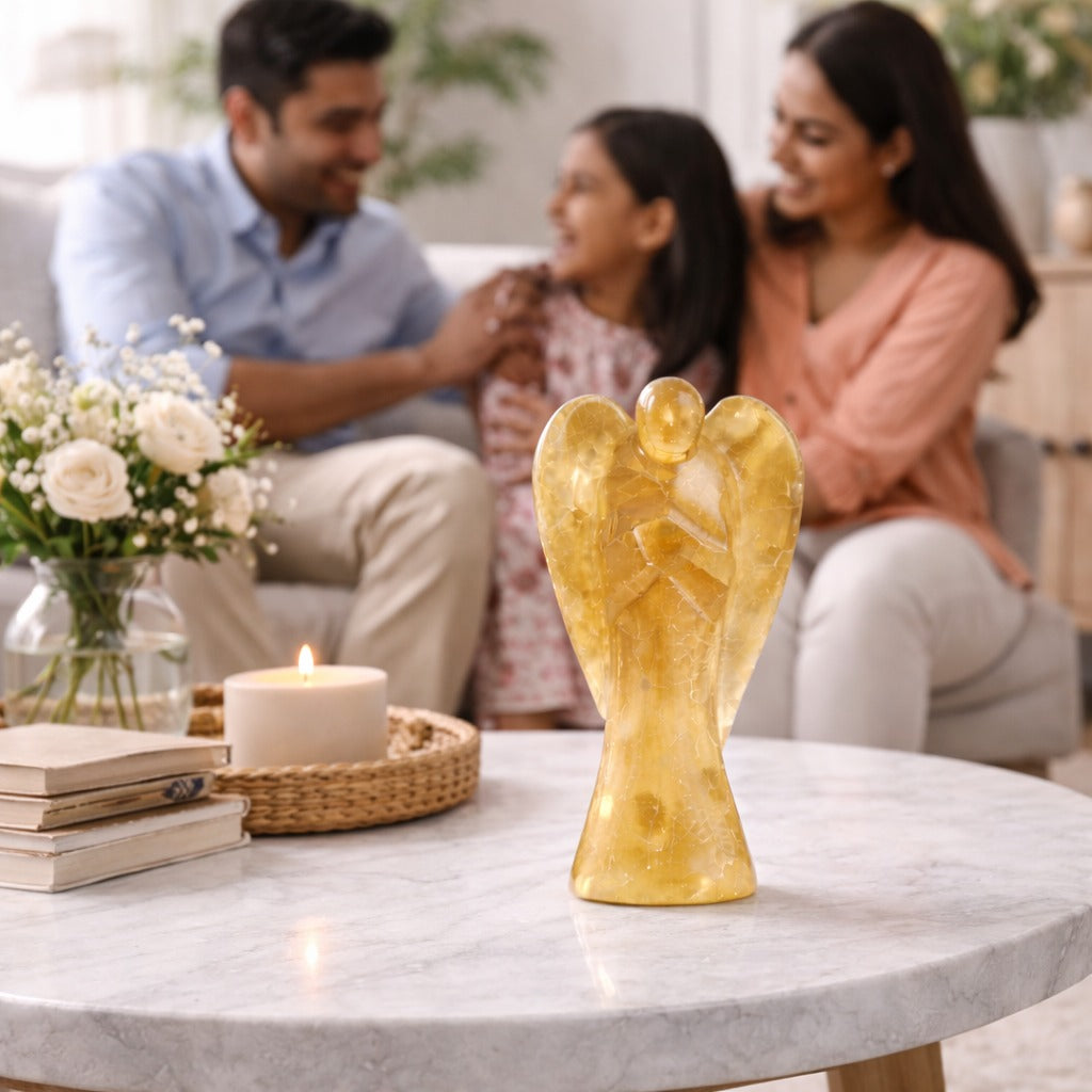 The Citrine Angel by ZenVedas is a powerful symbol of divine guidance, healing, and positive energy. Hand-carved from natural Natural Citrine, this angel radiates its unique vibrational frequency to support your spiritual and personal growth.
