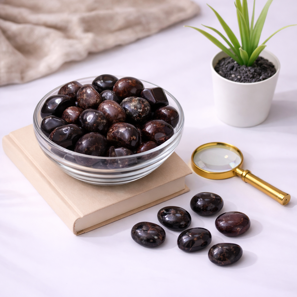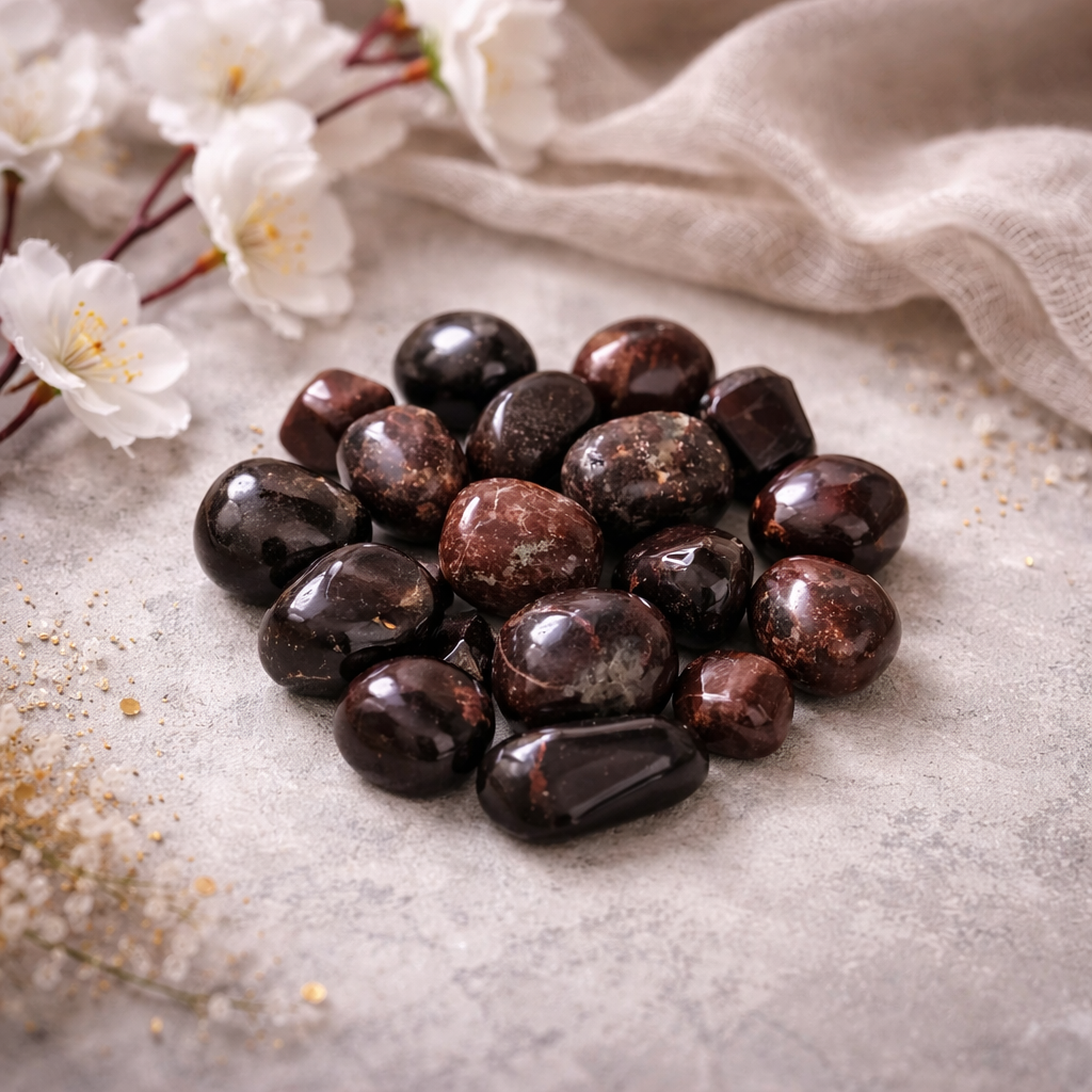 Buy natural Garnet Tumbles from ZenVedas for stability, protection & emotional balance. Ethically sourced and energetically cleansed before shipping.