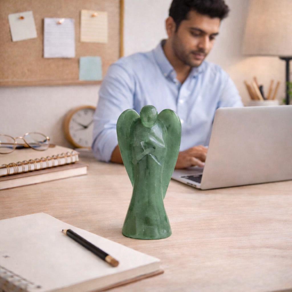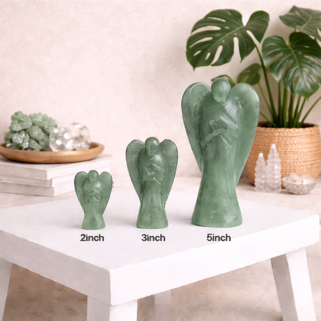 The Green Aventurine Angel by ZenVedas is a powerful symbol of divine guidance, healing, and positive energy. Hand-carved from natural Natural Green Aventurine, this angel radiates its unique vibrational frequency to support your spiritual and personal growth.
