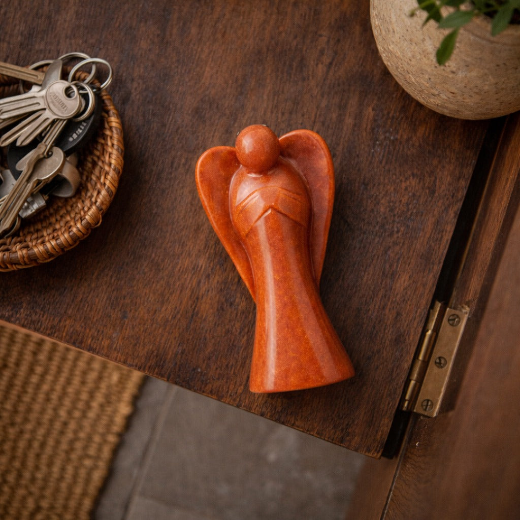 The Red Aventurine Angel by ZenVedas is a divine symbol of protection, healing, and spiritual guidance. Hand-carved from natural Natural Red Aventurine, this angel radiates powerful energy to support emotional balance, strength, and positivity.