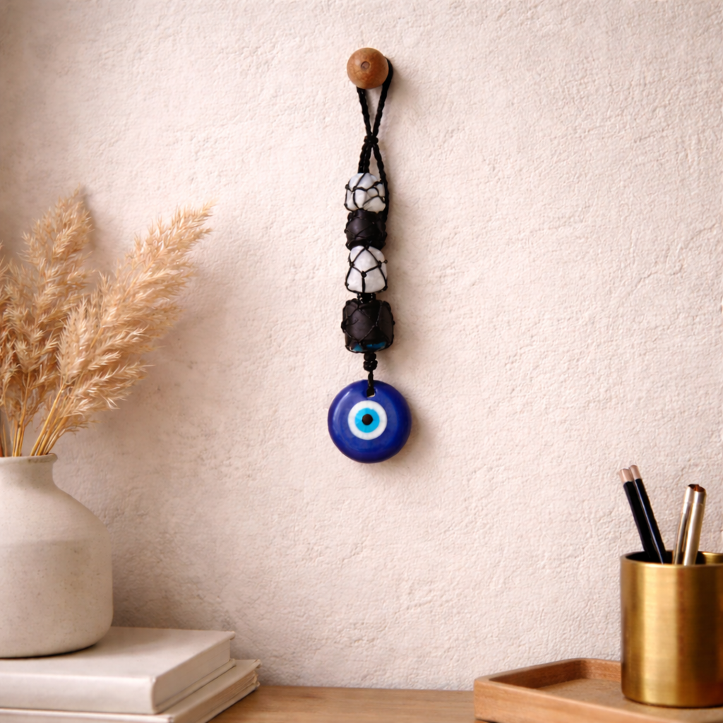A Selenite + Tourmaline Tumble Hanging is a powerful crystal combination designed to cleanse, ground, and protect your space by balancing light and grounding energies.