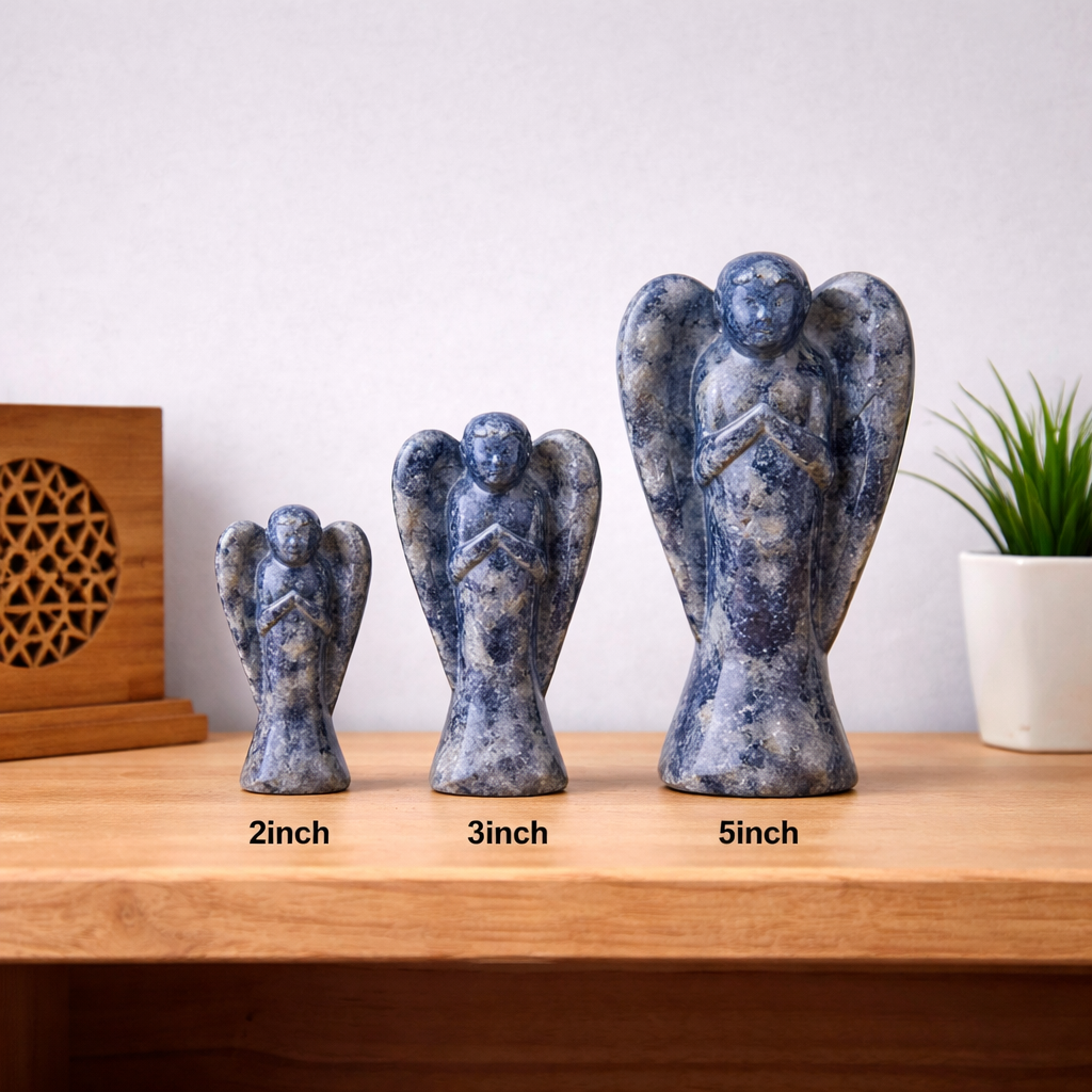 The Sodalite Angel by ZenVedas is a divine symbol of protection, healing, and spiritual guidance. Hand-carved from natural Natural Sodalite, this angel radiates powerful energy to support emotional balance, strength, and positivity.